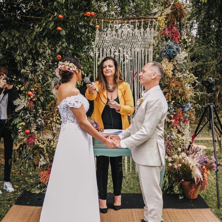 Há 10 anos, vivo de perto a magia dos casamentos, celebrando inúmeras histórias de amor inesquecíveis por esse Brasil afora. Cada cerimônia é um momento único que guardo com carinho no coração e que enche meu trabalho de significado e alegria.
